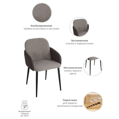Стулья серии Freeman — мягкие и практичные предметы мебели для домашнего и рабочего интерьера. Стулья Freeman имеют широкую эргономичную спинку и удобные подлокотники. Необычный дизайн подлокотников, выполненных в виде полукруглого укрепления за спинкой, добавляет стулу элегантности. Обивка стульев Freeman комбинированная: мягкая спинка и сидение обиты рогожкой, а подлокотники — экокожей. Такое сочетание привносит в интерьер дома чувство уюта. Обивка стульев выполнена в трендовых сдержанных цветах.