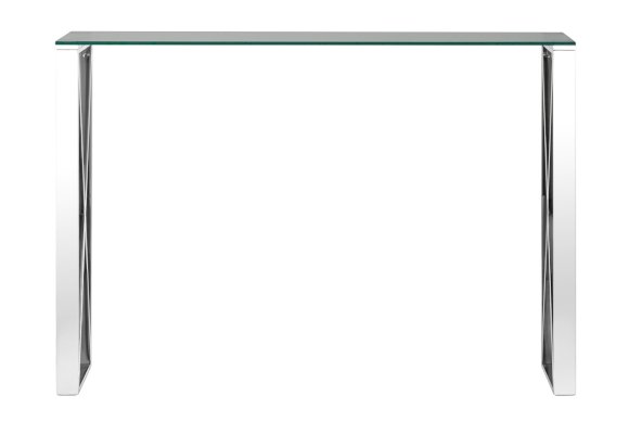Консоль КРОСС благодаря оригинальной форме станет ярким дизайнерским акцентом в интерьере. Каркас стола изготовлен из нержавеющей стали, столешница - закаленное стекло.