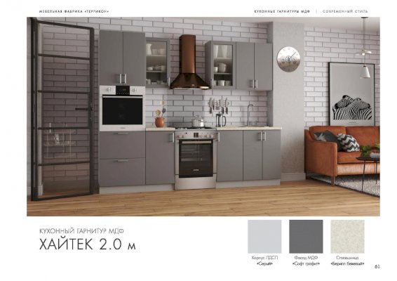 Кухня Хайтек изговаливается также в цветах серый/лайм глянец; серый/крем брюле глянец; серый/мокко глянец; серый/лайм глянец; серый/софт светлый. Модули в этих цветовых решениях вы сможете найти в нашем интернет-магазине.