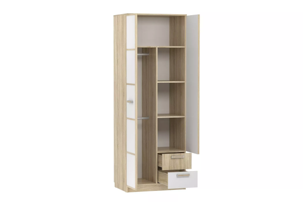 Шкаф «Фанк» предназначен для тех, кто любит выдержанный стиль. Идеально для организации подростковой комнаты. А универсальный дизайн и цветовое решение подойдет как для мальчика, так и для девочки. Отделение с 2-мя штангами позволит удобно развесить большое количество одежды на вешалках. Наличие полок позволит рассортировать одежду и поставить коробки. Два выдвижных ящика предназначены для сложенной одежды, аксессуаров, личных вещей.