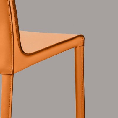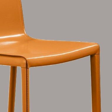 Главная особенность модели – плавный переход спинки в сиденье, образующий мягкий изгиб. Ножки стула, также обтянутые кожей, создают единый образ и являются визуальным продолжением сиденья.