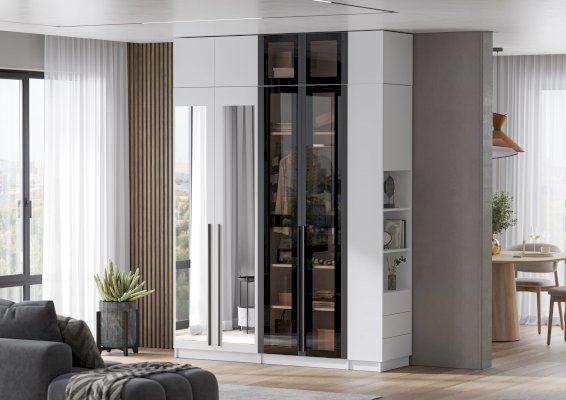 Лицевая фурнитура отсутствует. На фасадах установлена система открывания PUSH-TO-OPEN.