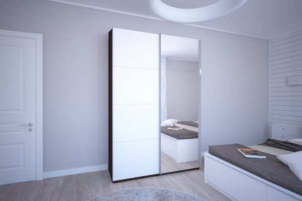 Шкаф-купе 2-х дверный Прайм Зеркало/Белое стекло 1200х2300х570 мм