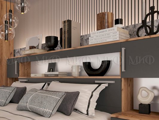 Кровать 1.6 с надстройкой с тумбами Бася (Миф)