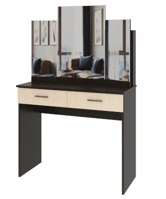 Столик туалетный с 2-мя ящиками на роликовых направляющих с задней надстройкой для хранения косметики. Боковые зеркала поворотные, на карточной петле.
